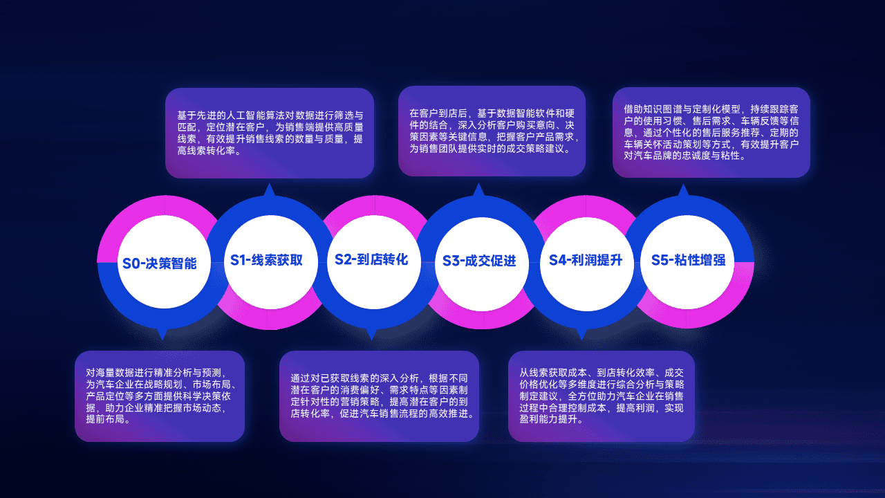 通过拓宽潜在客户来源、、优化线索分配并提高到店转化率,,,,以增强销售效率。。同时,,利用线索数据不断优化分析模型,,有效提升转化率,,,,扩大营销影响力。。。。